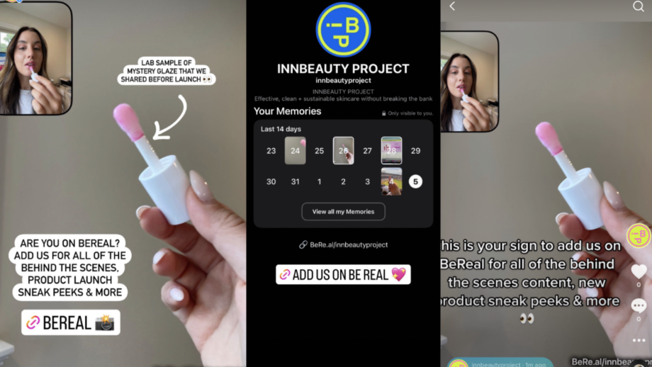 Voor merken lijkt BeReal een app te zijn waarop ze een exclusief kijkje in de keuken kunnen geven aan hun trouwste fans. Dit is precies wat make-up merk InnBeauty Project doet. Ze delen behind-the-scenes materiaal met hun volgers, meestal gefocust op het lanceren van nieuwe producten.