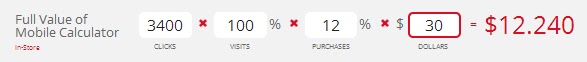 Er zijn diverse berekeningen te maken: In-store, calls, apps, cross-device en mobile site, waarbij je je eigen gegevens kan invullen.