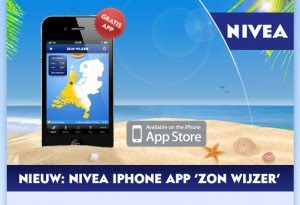 Ander voorbeeld is de Nivea Zon Wijzer (wederom een iPhone app), waarbij de consument oa kan checken wat voor weer het wordt, of je je moet insmeren en hoelang je in de zon mag zitten. Door middel van de zonsterkte en vastgestelde huidtype ontvang je een advies welk Nivea Sun product het best bij jou past.