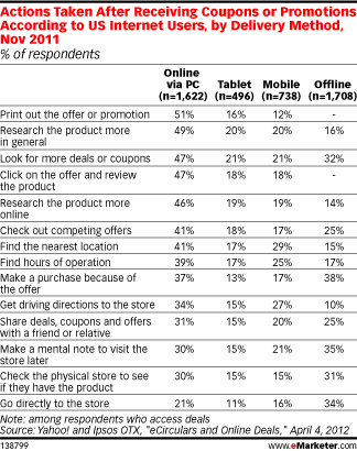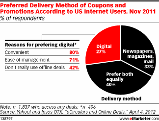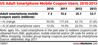 De Verenigde Staten is al decenia een couponland. Stapels coupons worden daar door de brievenbus gedrukt en je kunt daar zelfs speciale mappen kopen om al die coupons overzichtelijk in te bewaren. In Nederland zie je nog niet veel retailers, die coupons inzetten. De enige partij die nu in me op komt is La Place. Er wordt niet alleen in de VS veel verwacht van Mobile Couponing, maar ook hier in Nederland. Zie hier alvast Amerikaanse onderzoekcijfers van eMarketer.