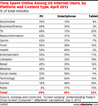 Er zitten echter grote verschillen in tussen het soort content. Automotive, financieel nieuws, TV streaming worden nog veel op de pc gedaan. Terwijl het weer, games, radio luisteren en social media vooral op de smartphone wordt gedaan. Het onderzoek laat ook het verschil in contentconsumptie tussen mannen en vrouwen zien. Mannen in de leeftijd 25 – 49 jaar kijken het liefst sport, terwijl vrouwen graag via de tablet informatie opzoeken over retail, lifestyle en opvoeding.
