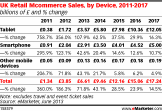 Over vier jaar zullen de Britse online retail aankopen voor dan een kwart via mobile devices verlopen verwacht het bedrijf.