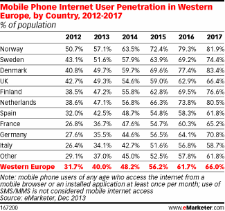 Onderzoek: Helft van West Europeanen gebruikt mobiel internet